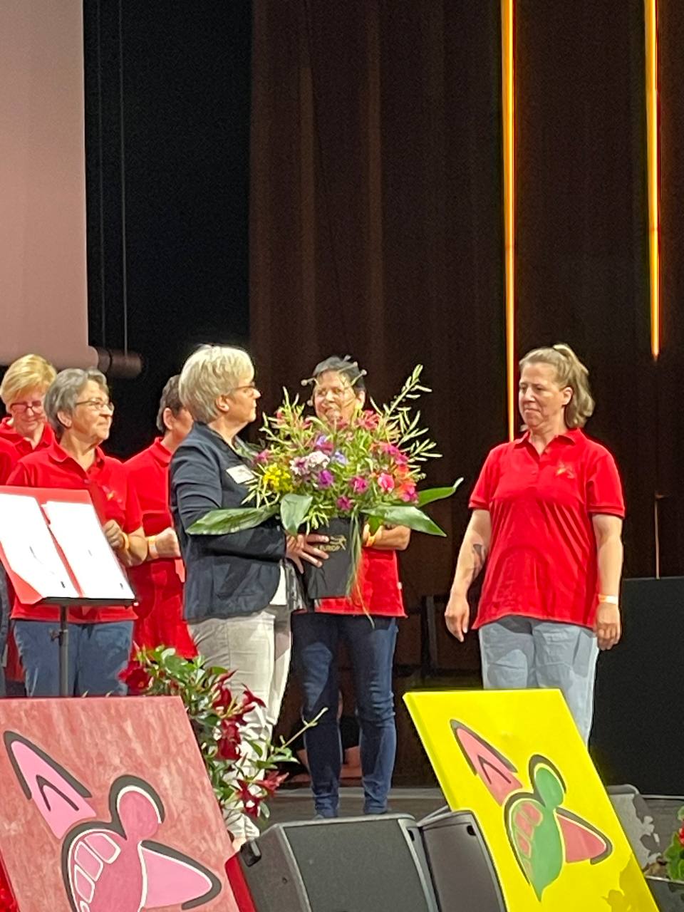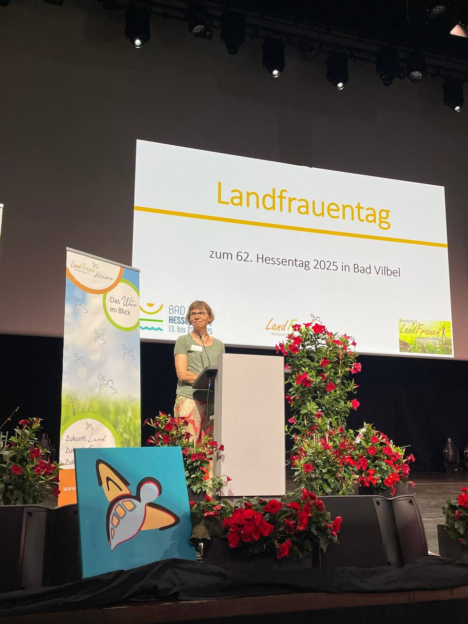 Die Geschäftsführerin des Bezirks-landfrauenvereins (BV) Nidda, Anneliese Zimmer, nutzte den mit Livemusikerinnen und Autorinnen gerahmten Bühnenauftritt Anfang März zu einem starken Auftritt, mit Präsentation der Landfrauen in ihrem breiten Engagement über die Ebenen der Verbandsarbeit.